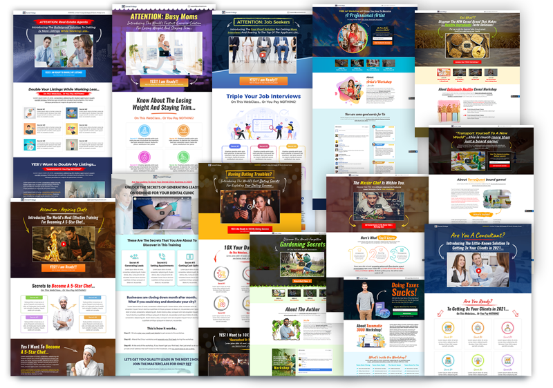 Here Are Some Samples Of Funnels That Are Included In “The Premium Done-For-You Funnel Templates”  That Are Proven to Generate Red-Hot, Ready-to-Buy Leads and Convert“CLICKS INTO CUSTOMERS” in Minutes